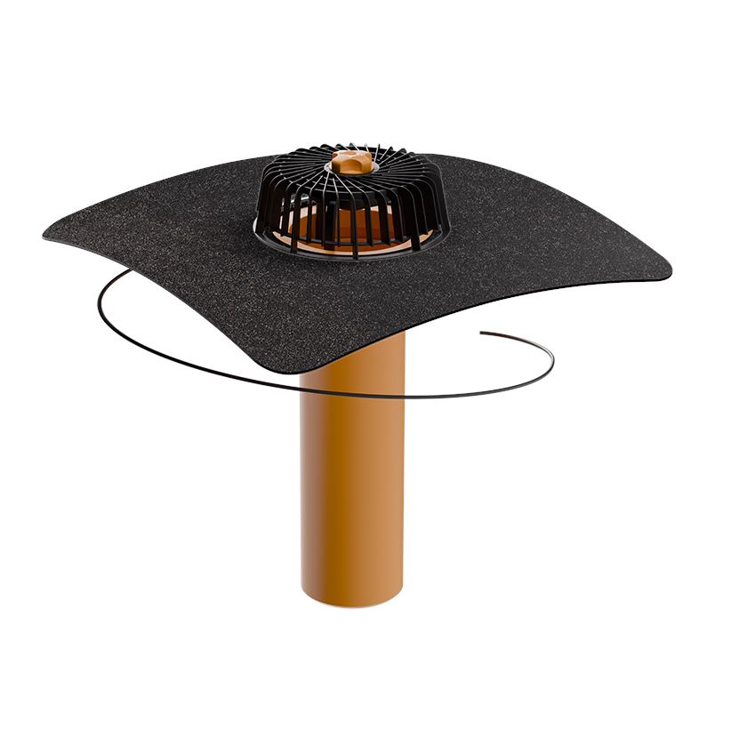 Střešní vpust TOPWET s integrovanou manžetou z modifikovaného asfaltového pásu s ochranným košem, vyhřívaná 230 V s připojovacím kabelem 1,5 m. Jednostěnná s možností délky na zakázku.
