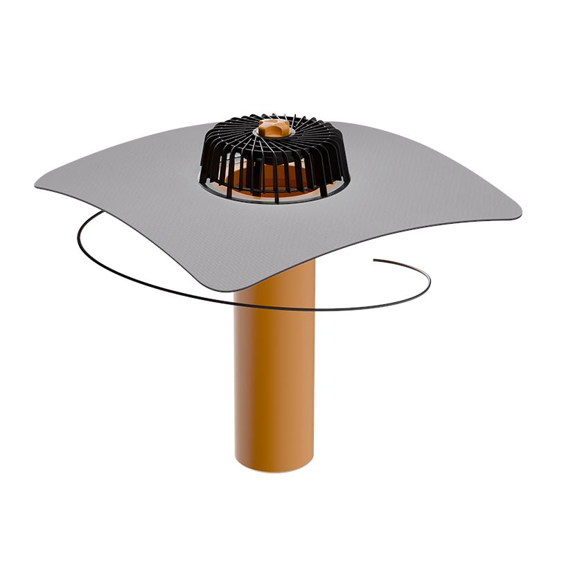 Střešní vpust TOPWET s integrovanou TPO/FPO manžetou s ochranným košem, vyhřívaná 230 V s připojovacím kabelem 1,5 m. Jednostěnná s možností délky na zakázku.