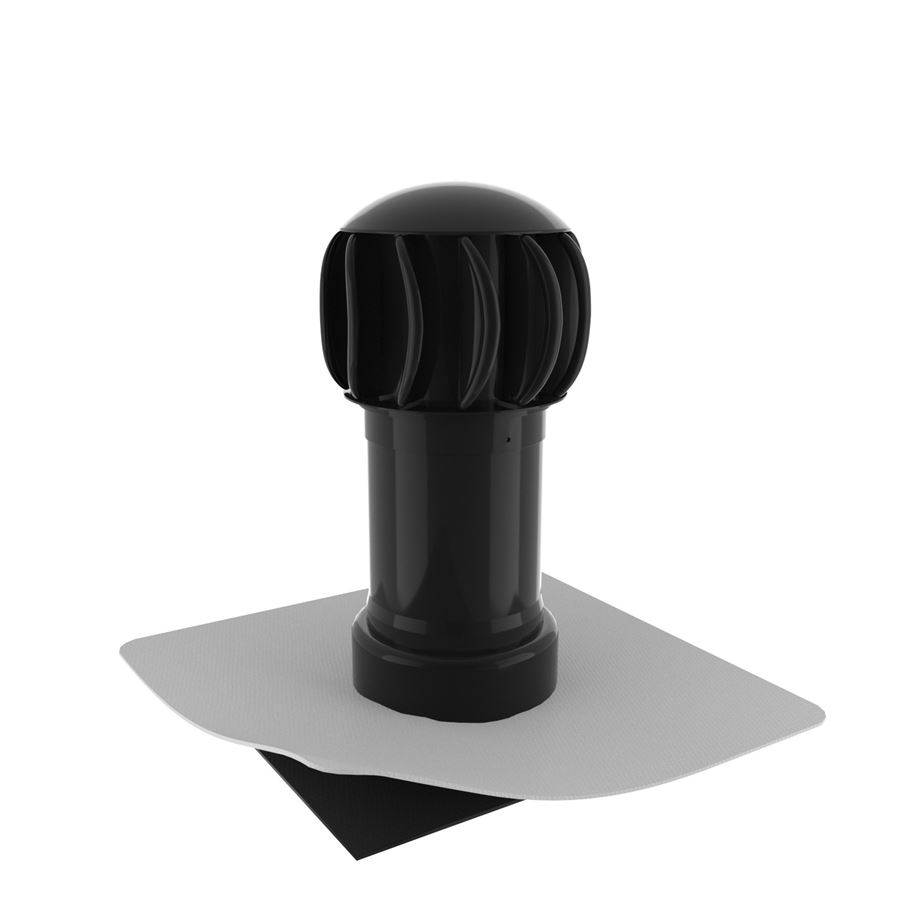 Ventilační turbína TOPWET s integrovanou TPO/FPO manžetou. Výška nad izolaci 250 mm.